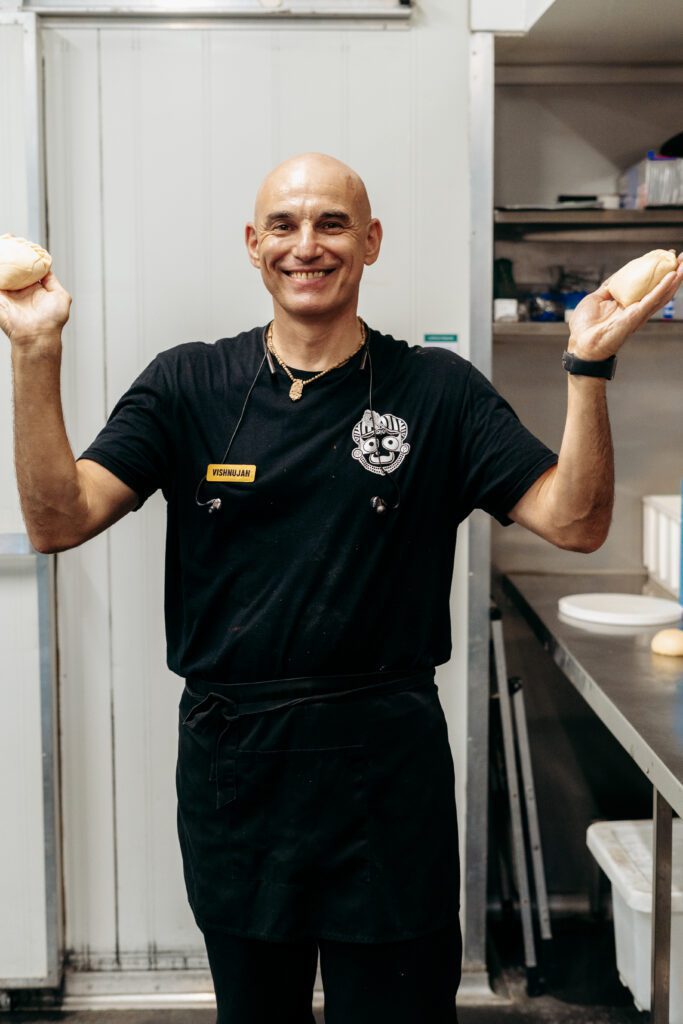 Our culture revolves around fostering a nurturing connection between Krishna (or God) and all living beings. We firmly believe that the consciousness invested in preparing our food permeates the culinary experience for those who partake in it. Thus, we endeavour to infuse our food with love and service, offering it daily. This blessed nourishment is known as “Prasadam,” embodying the divine connection and the essence of a shared meal filled with love and gratitude.